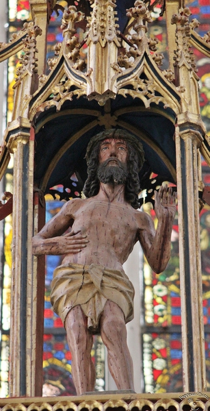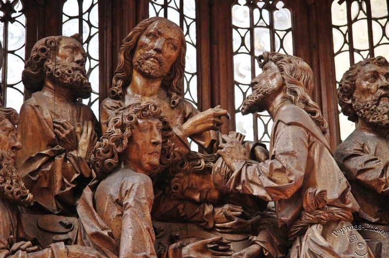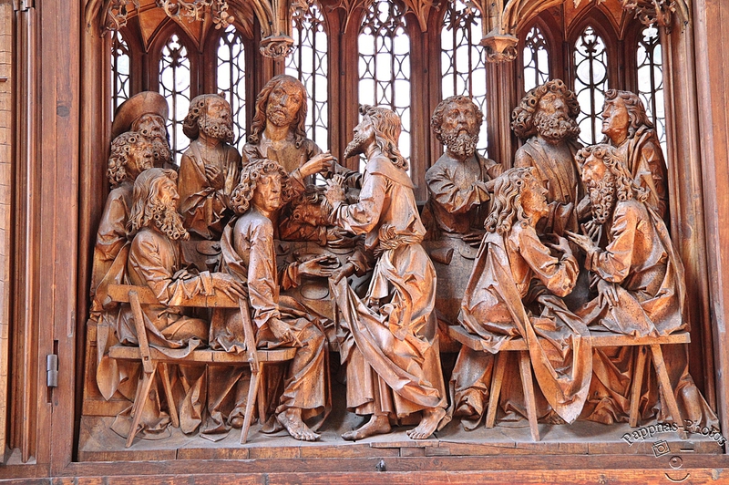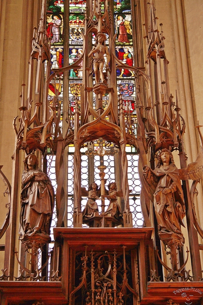 Der herausragendste Altar in dieser Kirche ist der Heilig-Blut-Altar von Tilman Riemenschneider, den er zwischen 1500 und 1505 schuf. Die von Riemenschneider geschaffenen Holzfiguren zeichnen sich durch ausdrucksstarke Gesicher und durch detaillierte Bekleidung mit feinstem Faltenwurf aus. Offensichtlich war es von ihm immer beabsichtig, "Holzsichtigkeit" zu vermitteln, denn seine Werke waren nie farbig.