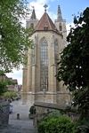 Übrigens: St. Jakob ist zwar keine, wie es wohl auf neudeutsch heißt, "Drive-In"-Kirche, aber man kann mit dem Auto drunter herfahren: wie eine Brücke überquert das Kirchenschiff eine Straße...
