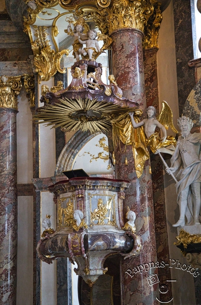 Sie schufen ein Abbild des Himmels – so kann, nein muß man die Hofkirche der Würzburger Residenz beschreiben! Üppigster Barock in verschwenderischer Form wohin das Auge auch blickt.